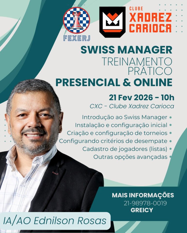 CURSO SWISS MANAGER ♟️ O Clube Xadrez Carioca (CXC) realizará um Curso Presencial e