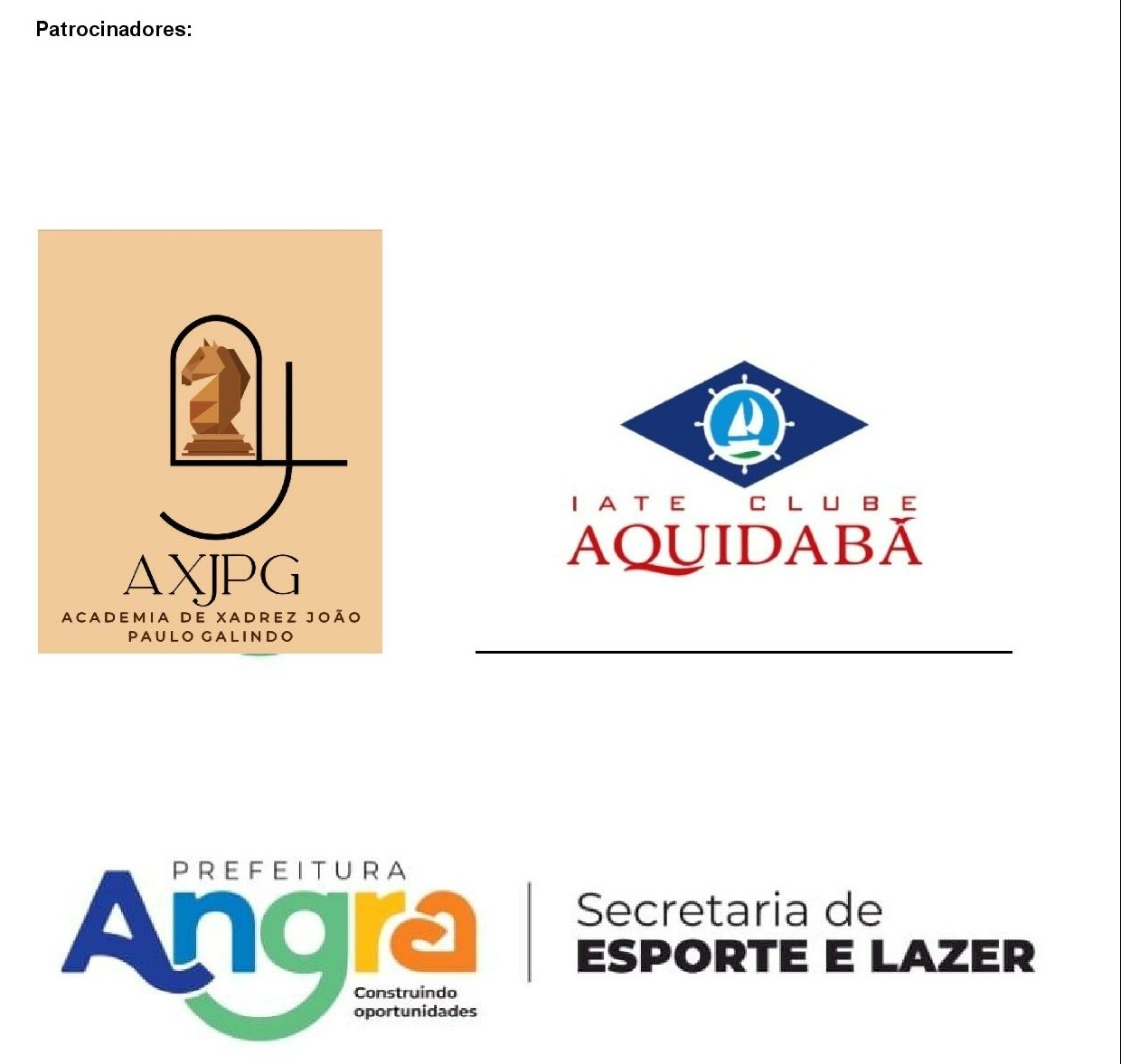 Agradecemos imensamente o apoio da Academia de Xadrez João Paulo Galindo (AXJPG), do Iate Clube Aquidabã e da Prefeitura Municipal de Angra dos Reis – Secretaria de Esporte e Lazer, que tornaram possível a realização deste evento, proporcionando uma estrutura acolhedora, segura e inspiradora para todos os participantes.