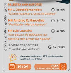 O evento contará com mini palestras grátis e análise de partidas preferidas (1 por autor) grátis também!